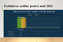 Astfel, vor fi alocate surse financiare pentru asigurarea condițiilor conforme de funcționalitate a instituțiilor municipale învățământ general anul 2022 care cuprinde: