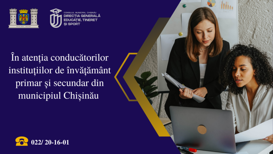 În atenția conducătorilor instituțiilor de învățământ primar și secundar din municipiul Chișinău