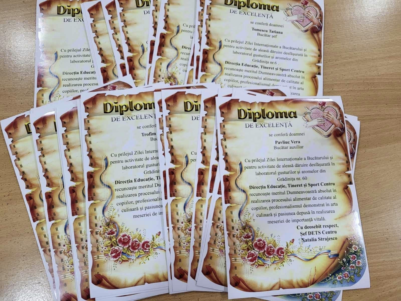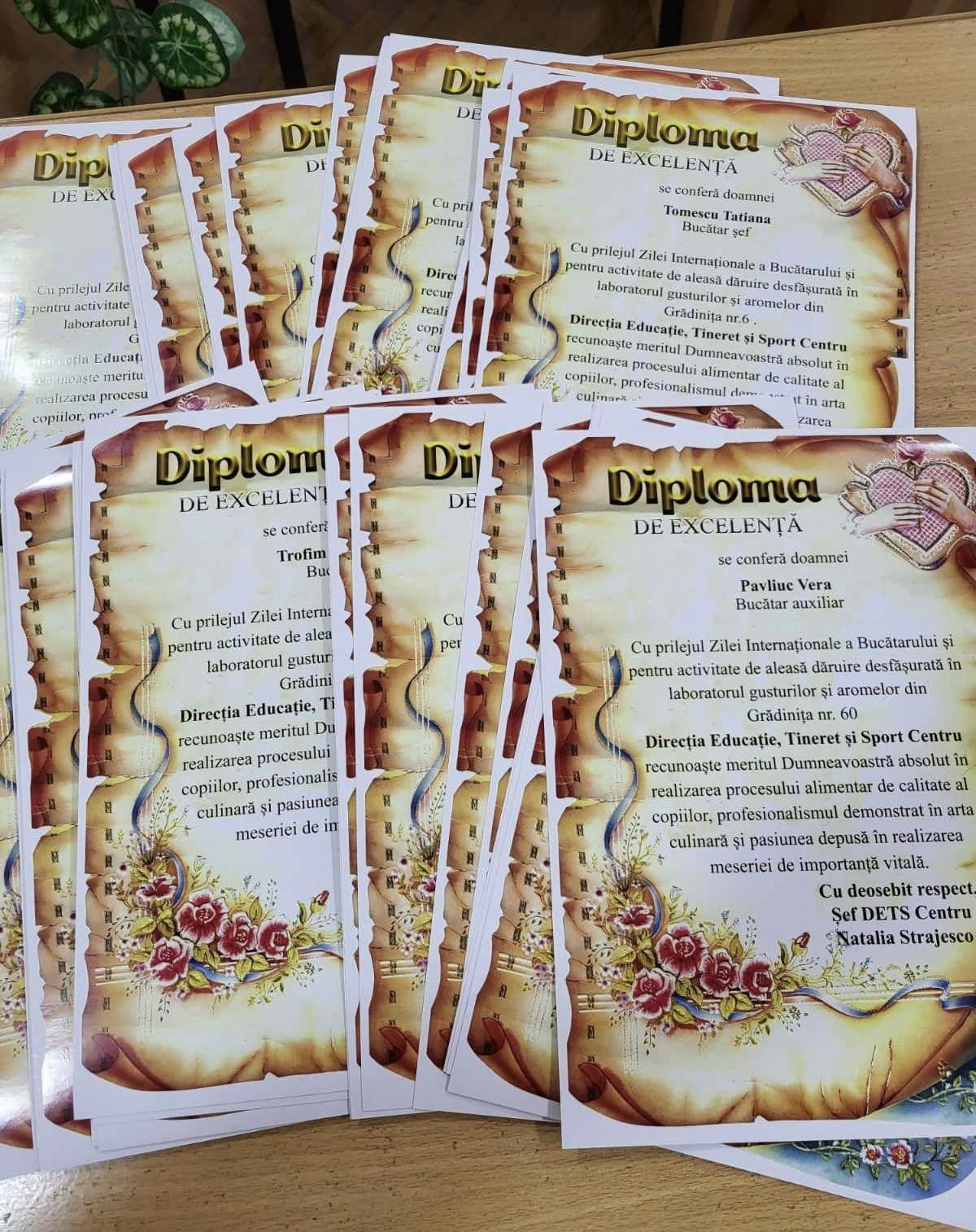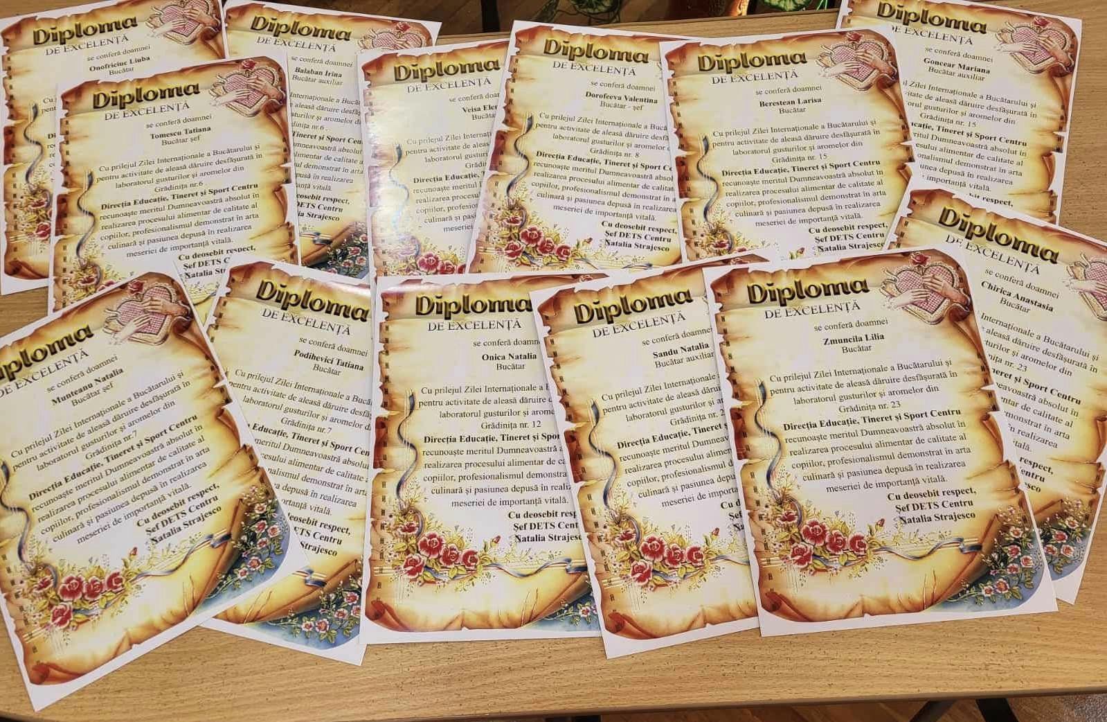 Bucătarii din școlile și grădinițele din Centru apreciați cu Diplome de Excelență
